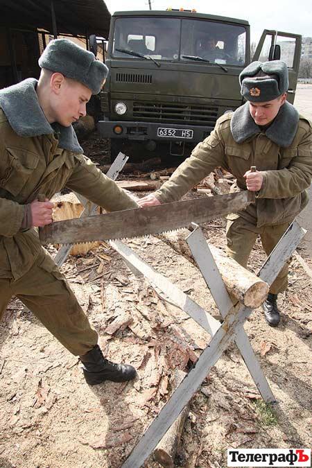 А на улице полным ходом идет разгрузка и распилка дров – бойцы украинской армии осваивают особое военное орудие – пилу. Из Полтавы привезли несколько машин дров. Еще у отечественной армии в арсенале имеется уголь. Офицеры говорят, что этого запаса им должно хватить на месяц.