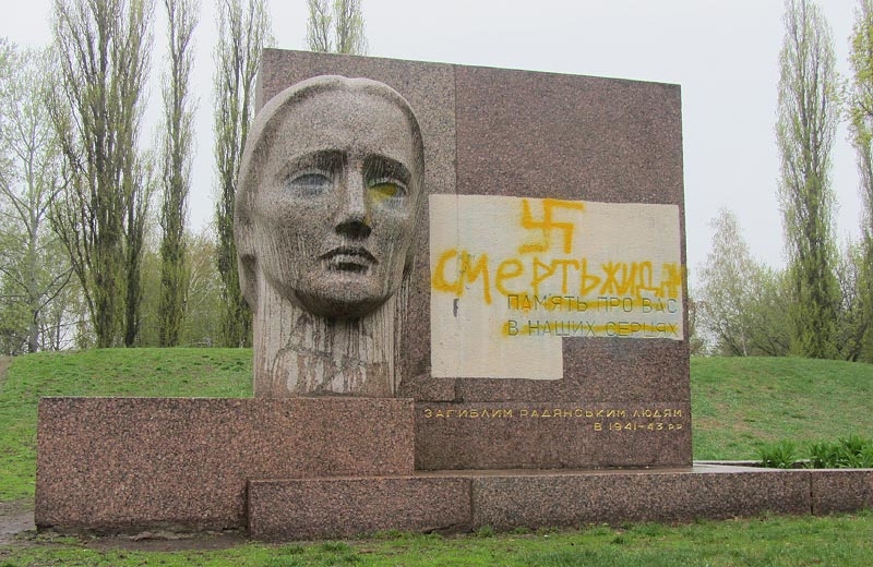 Неизвестные нанесли на памятник антисемитский призыв и нарисовали свастику