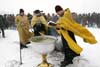 У лютий мороз та хуртовину святкували в Кременчуці Водохреща. Та, незважаючи на негоду, сотень п’ять людей зібралося минулого четверга на чарівне дійство освячення води на пристані біля Річкового вокзалу..