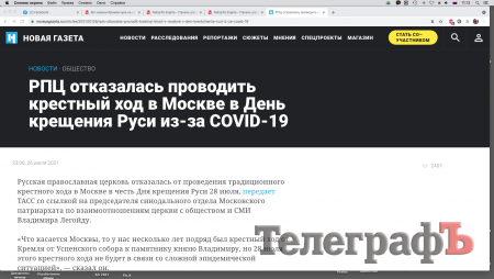 В это же самое время, параллельно, читаю новость: «Русская православная церковь отказалась от проведения традиционного крестного хода в Москве в честь Дня крещения Руси 28 июля в связи со сложной эпидемической ситуацией...». То есть в Московии их местная церковь заботится о здоровье прихожан — нельзя же подвергать риску заразиться смертельной болезнью тех, кто эту церковь кормит. И та же самая церковь, окопавшаяся в Украине, собирает в Киеве в одном месте потную толпу из 350 тысяч местных жителей, чтобы...