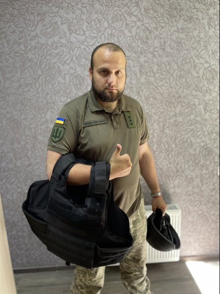 На прохання кременчуцької волонтерки Маргарити Туаєвої передав бронежилет та шолом для потреб нашого земляка, що змінив поліцейську уніформу на військовий однострій.