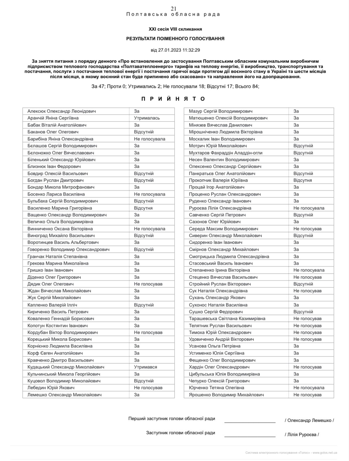 Що ж стосується підсумків ганебного голосування за єдиний шанс встановити тарифи на рівні 24.02.2022 р. в незалежності від того, хто був визначений надавачем послуг, то вони наступні.