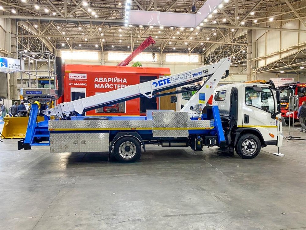 АЛЬФАТЕКС є офіційним дистриб'ютором італійської компанії CTE Group, яка виготовляє різноманітні підйомники на автомобільних шасі та самохідних гусеничних платформах. На виставці було представлено автовишку CTE B-LIFT 200 HY на шасі DAYUN CGC1060 з робочою висотою підйому до 20 метрів.