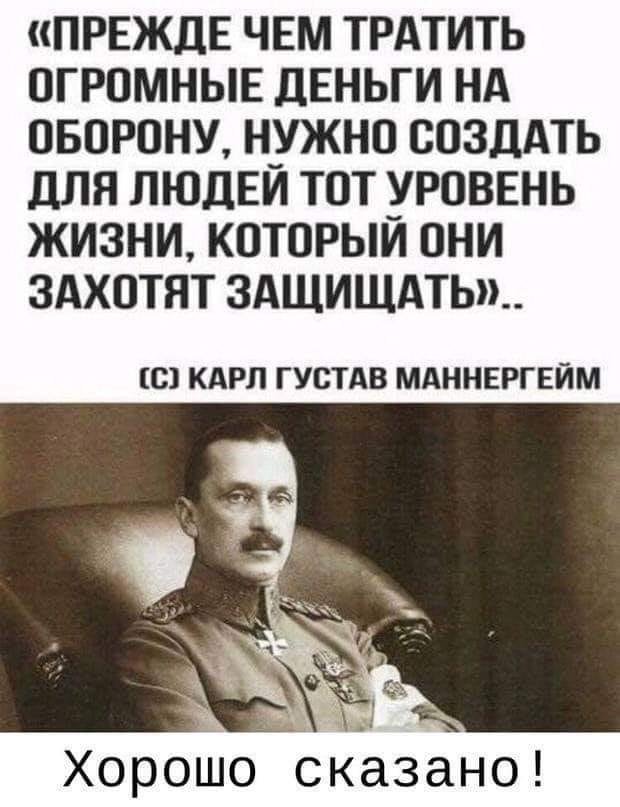 Те, що це відверта брехня і Карл Маннергейм ніколи такого не говорив, одразу зрозуміло тим, хто хоч трохи знає історію. Якби він таке казав, то зараз не було б у світі незалежної Фінляндії. Навпаки, маршал Маннергейм усе життя присвятив тому, щоб зміцнювати обороноздатність країни та кинув величезні ресурси на оборону Фінляндії, збудувавши на кордоні з СРСР «лінію Маннергейма». Ці ресурси були витрачені не на покращення життя фінів, а «зариті у землю та бетон». І хоч радянська армія цю лінію оборони з величезними втратами таки прорвала, саме мужня боротьба фінської армії під його командуванням проти набагато чисельнішої армії агресора змусила СРСР змінити свої плани, і завдяки цьому Фінляндія зберегла свою незалежність.