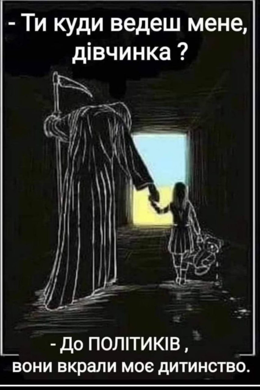 Цією емоційною картинкою посилається меседж, що не Путін і Росія винні у війні, яка вкрала дитинство в українських дітей, а українські політики.