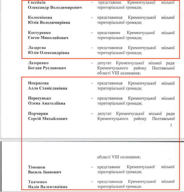 На скриншоті з протоколу погоджувальної комісії, який також міститься у відкритому доступі бачимо наступні імена: