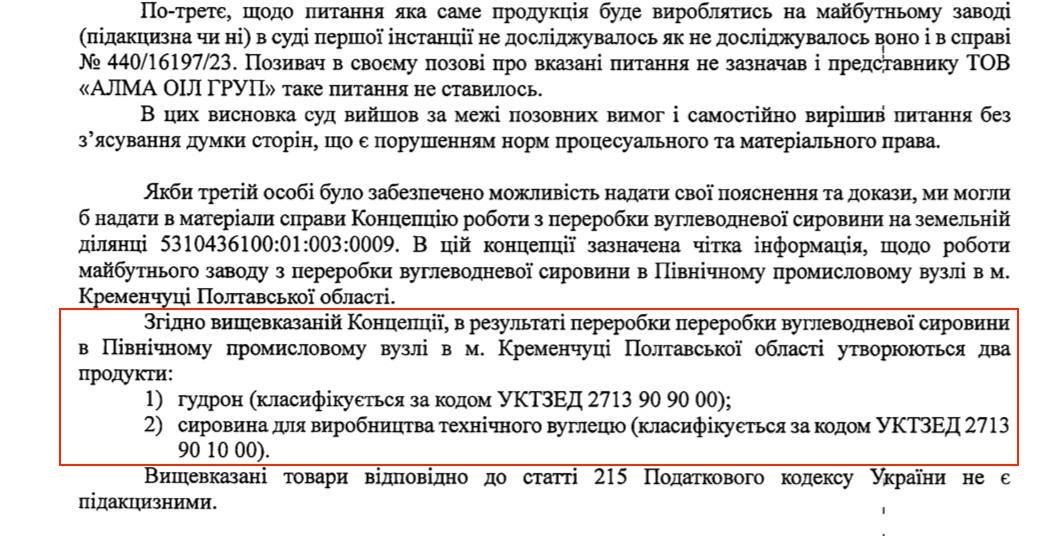 На фото уривок з апеляційної скарги ТОВ «Алма Оіл Груп»