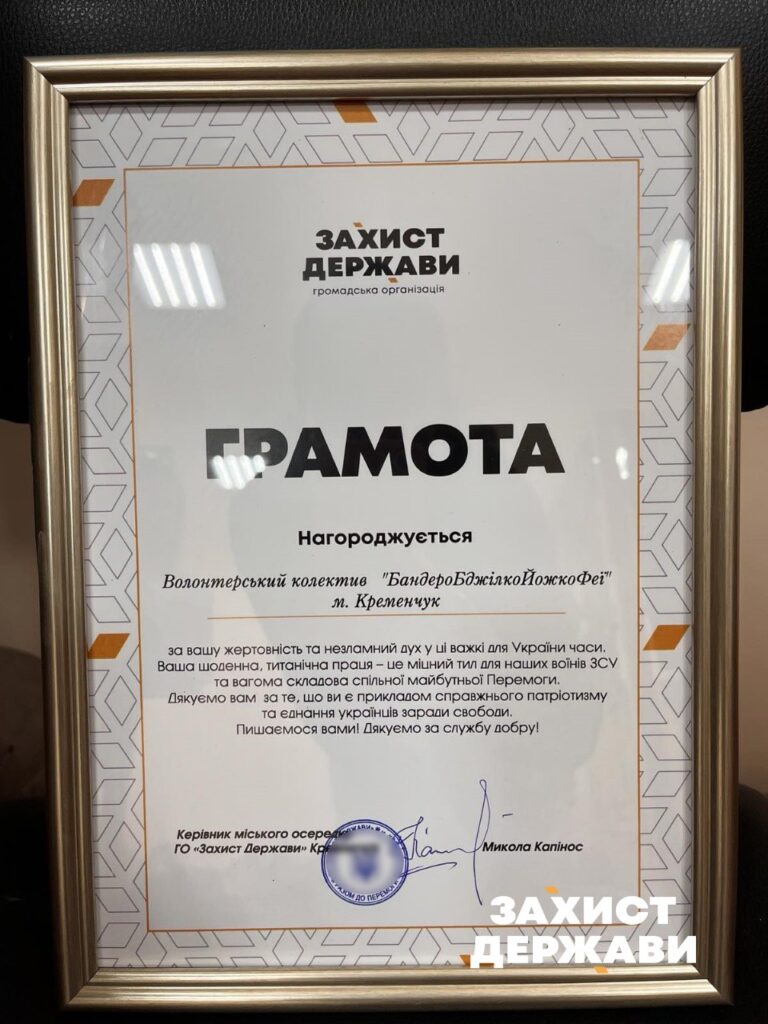 Напередодні Всесвітнього дня волонтерів керівник Кременчуцького осередку ГО «Захист держави» Микола Капінос відвідав волонтерський колектив із промовистою й добре знаною назвою — «БандероБджілкоЙожкоФеї».