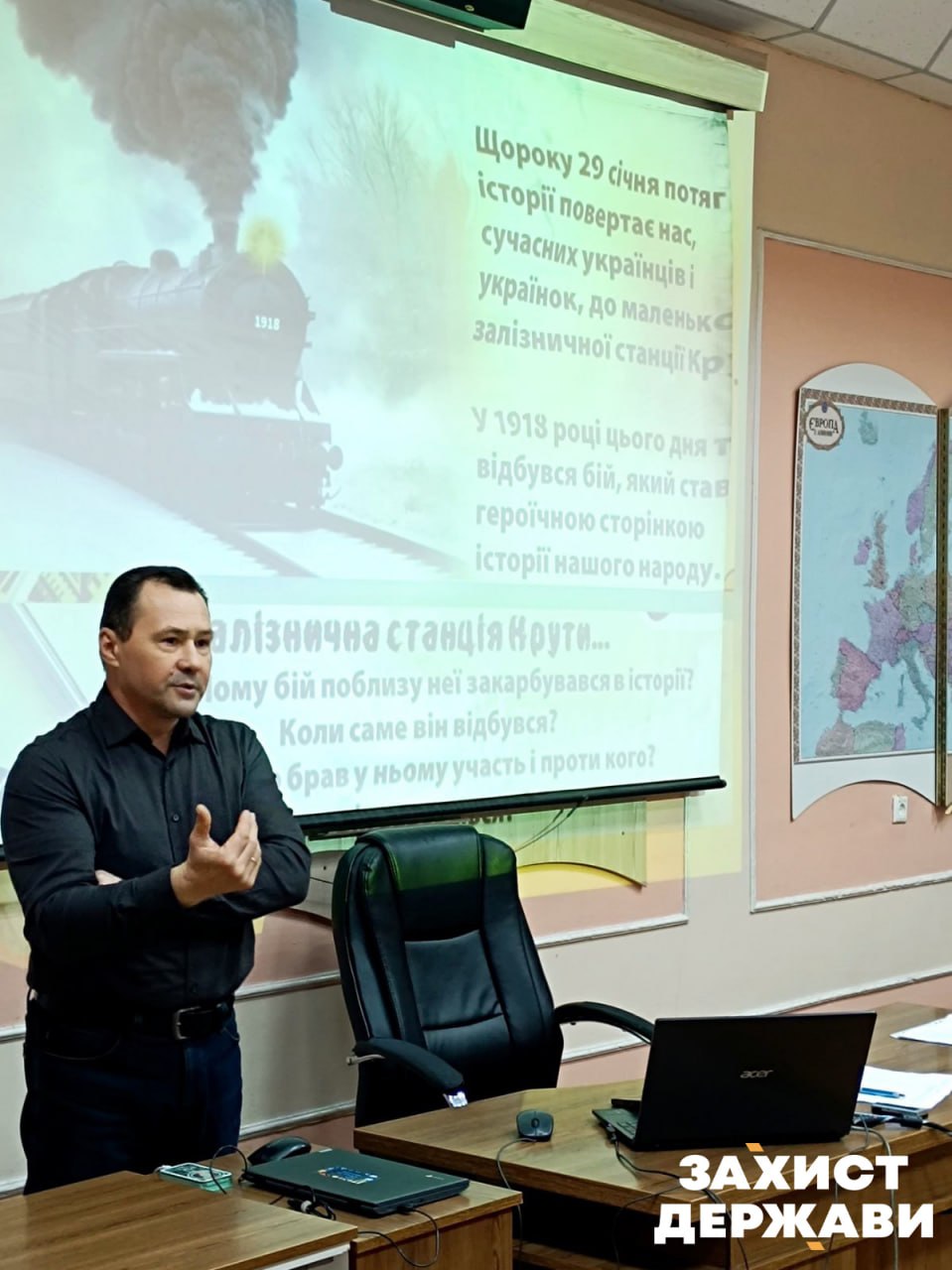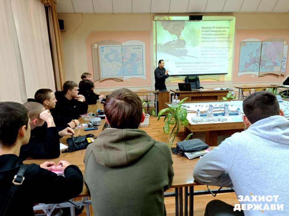29 січня, у День пам’яті Героїв Крут, представники Кременчуцького районного осередку ГО «Захист держави» спільно з викладачем Михайлом Ступкою провели тематичну зустріч зі студентами Вищого професійного училища №7 м. Кременчука.