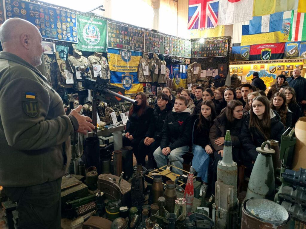 Учні ознайомилися з експонатами, які відображають реалії російсько-української війни. А після екскурсії говорили про важливе: про війну без прикрас і ілюзій, про особистий вибір та відповідальність кожного, а також про завдання, що стоять перед Україною.