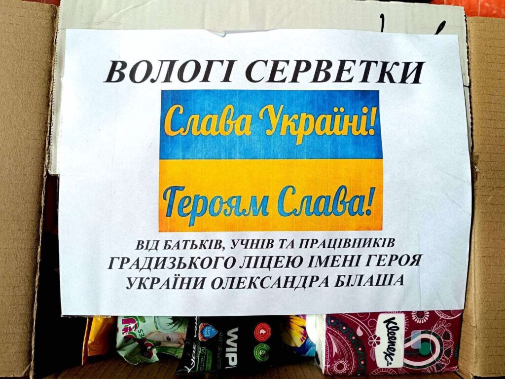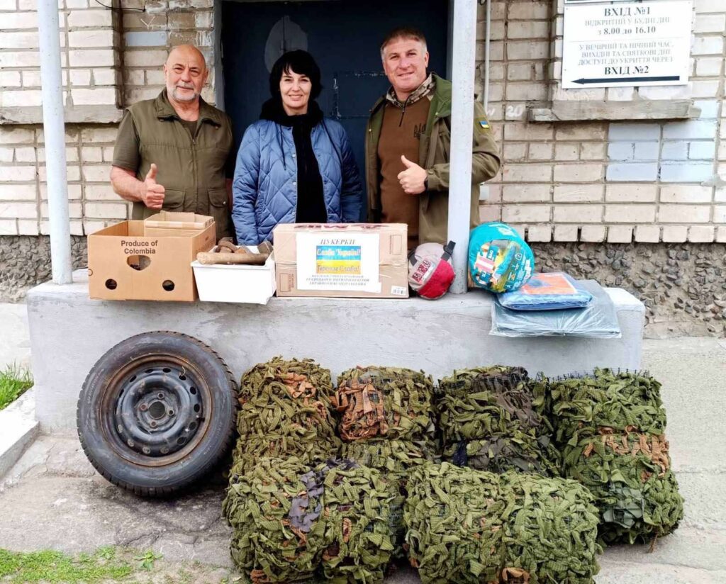 Захисникам передали маскувальні сітки, скоби для укріплення позицій, інструменти для ремонтних бригад, тенти для автомобілів, газові пальники зі змінними балончиками, вологі серветки, корм для тварин та, обов’язково, солодощі.
