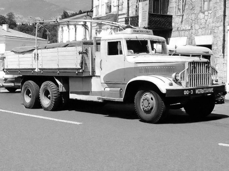 1961 год, дизель-троллейвоз ДТУ-10 на шасси КрАЗ-219. Построен в единственном экземпляре институтом УкрНИИпроект для легендарной троллейбусной линии Симферополь — Ялта.