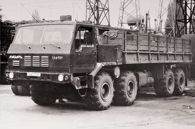 1986 год, КрАЗ 256Б1−030. Автомобиль, в оперативном порядке созданный для работы в зоне радиоактивного заражения. Вместо кабины — одноместная свинцовая капсула. Всего было сделано 18 таких машин, по окончании ликвидации аварии на ЧАЭС все были уничтожены.