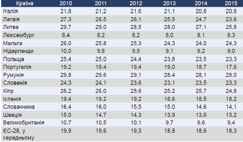 Самый низкий – в Австрии (8,2%) и Люксембурге (8,3%).