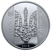 На аверсі монети зображено малий Державний Герб України та напис УКРАЇНА (вертикально); на дзеркальному тлі стилізовано зображено тризуб - Знак Княжої Держави Володимира Великого, що складається із різновеликих стилізованих сердець, які символізують самопожертву та добродійництво; номінал 5 ГРИВЕНЬ (вертикально праворуч), унизу - рік карбування монети 2016 та логотип Банкнотно-монетного двору Національного банку України.