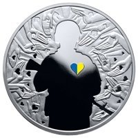 На реверсі монети зображено символічну композицію: у центрі – абрис українського воїна із символічним жовто-блакитним серцем (використано тамподрук), до якого з усіх боків протягнуто стилізовані долоні з серцями, що символізують любов, турботу, опіку, пожертву та доброту.