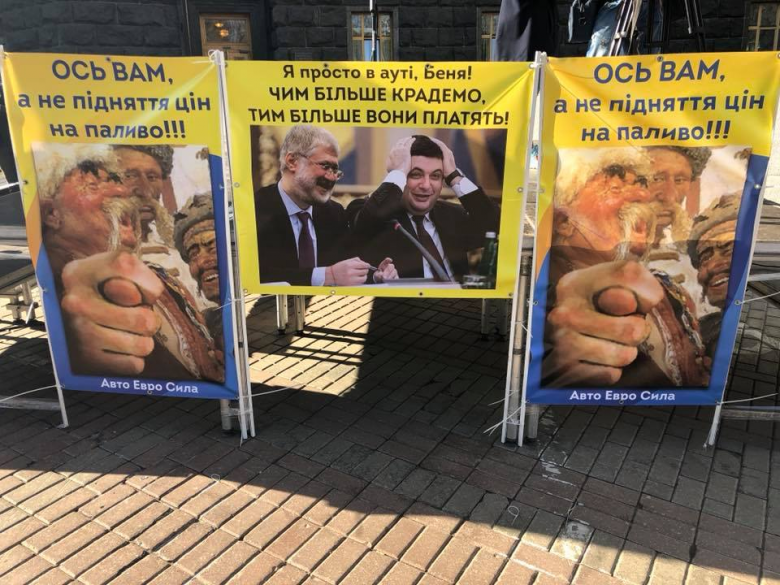 Под Кабмином сегодня, 18 апреля, проходит акция протеста активистов «Авто Евро Силы», которые выступают против повышения цены на бензин и дизтопливо. Об этом сообщают «Укринформ», «Информатор» и ряд других всеукраинских СМИ.
