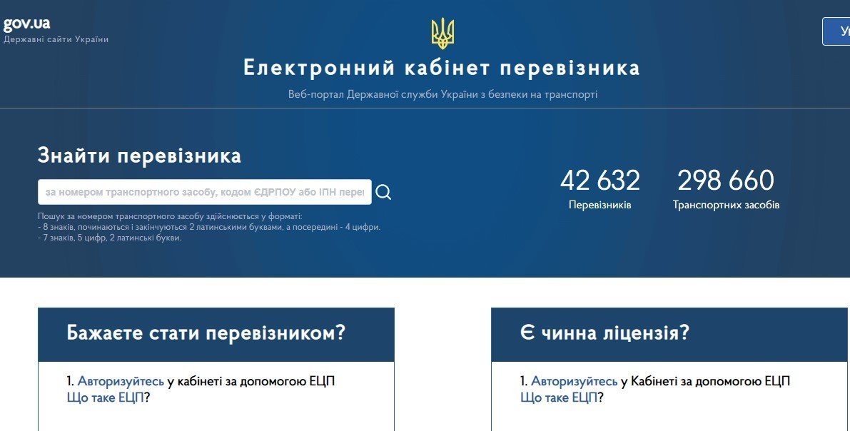 Для поиска перевозчиков не нужна регистрация. Данные предоставляются бесплатно. За систему отвечает Государственная служба Украины по безопасности на транспорте.