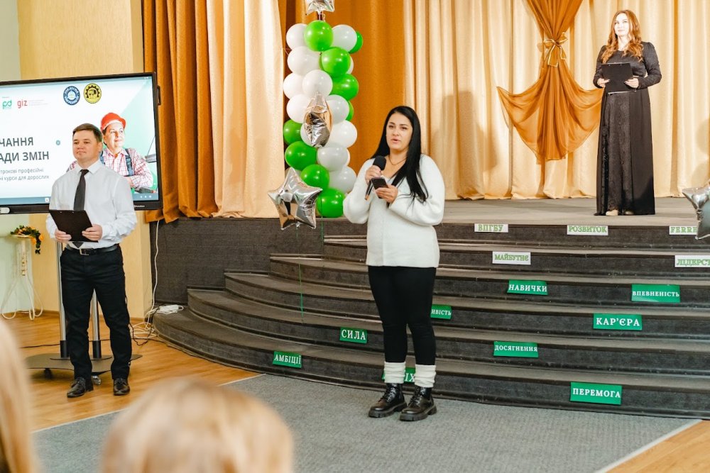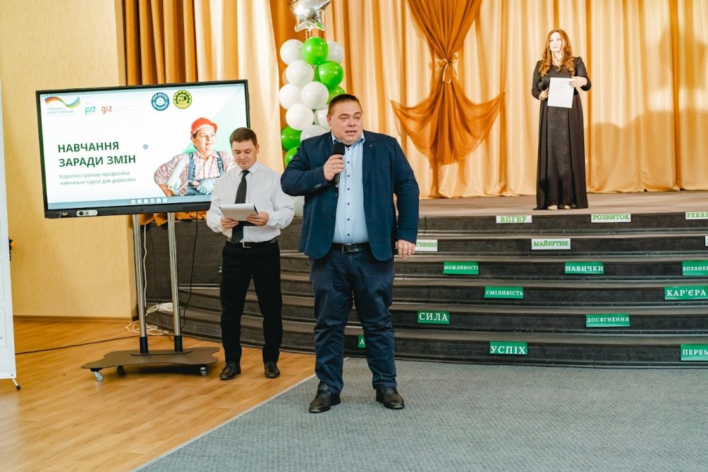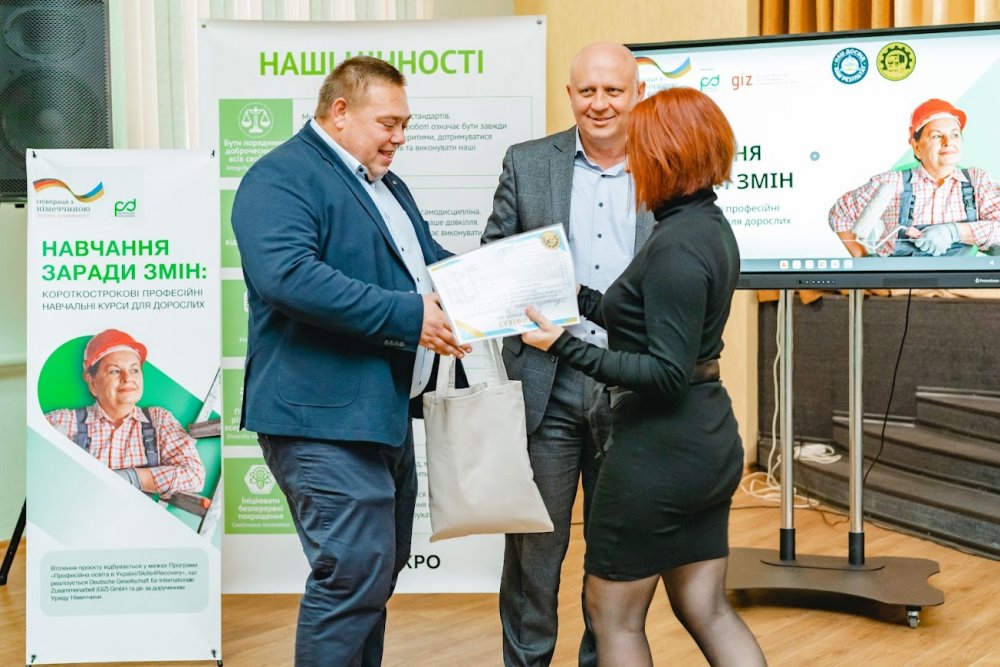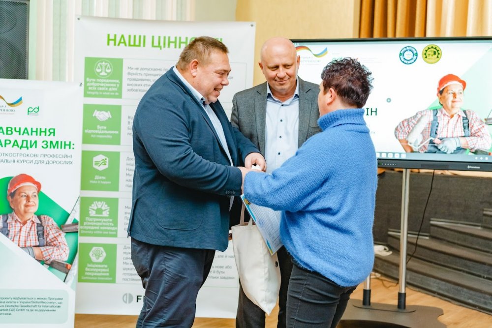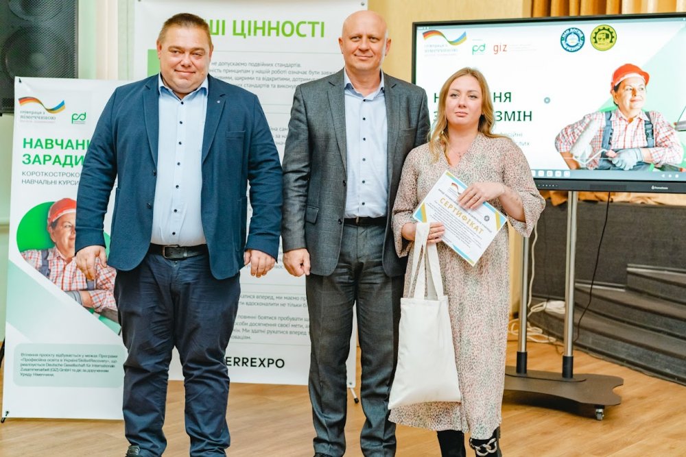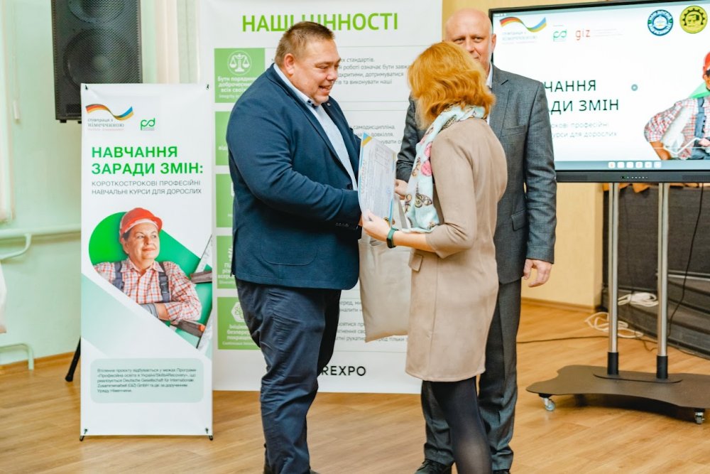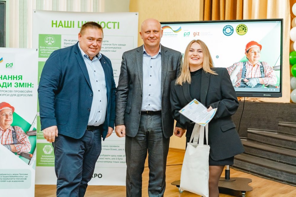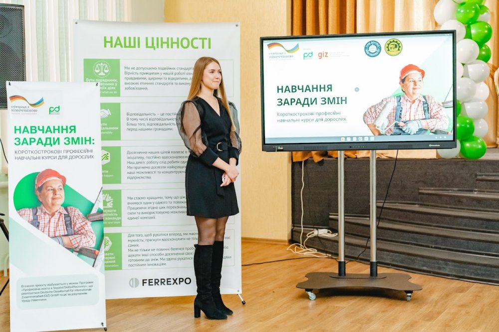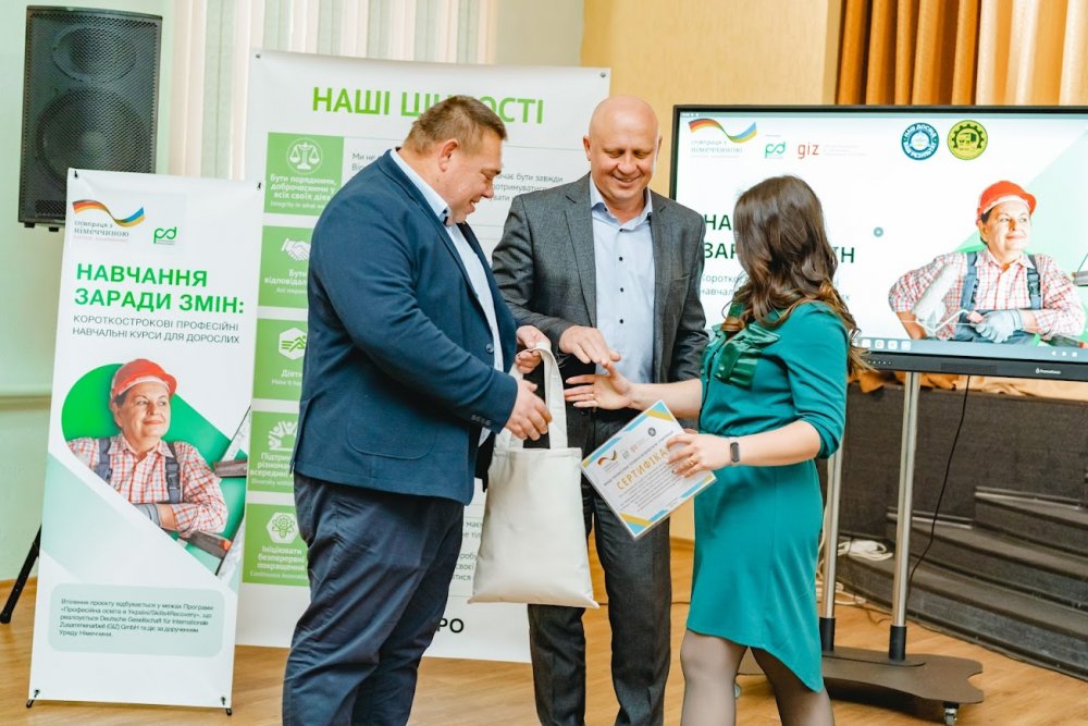 Як розповіли в закладі, проєкт «Навчання заради змін: короткострокові навчальні курси для дорослих» реалізується у співпраці ВПГБУ з громадською організацією (ГО) «Український професійний розвиток» у рамках програми «Професійна освіта в Україні» Skills4Recovery. Ініціатива впроваджується Німецьким товариством міжнародного співробітництва (GIZ) за дорученням Федерального уряду Німеччини та за підтримки урядів ЄС та низки європейських країн. Програма спрямована на навчання та перепідготовку кваліфікованої робочої сили в чотирьох секторах економіки, важливих для процесу відновлення: будівництво, транспорт і логістика, сільське господарство та сфера послуг.