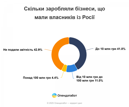В Україні з січня 2025 року 91 компанія змінила власників з російською пропискою. Серед них 88 бізнесів активно працюють, ще три перебувають у стані припинення. Про це повідомили в «Опендатаботі».
