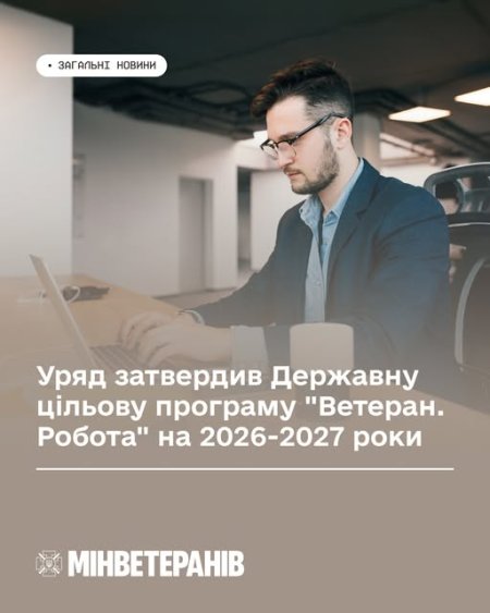 Кабінет міністрів України схвалив державну цільову програму «Ветеран.Робота» на 2026-2027 роки, розроблену Мінветеранів. Про це повідомила пресслужба міністерства.