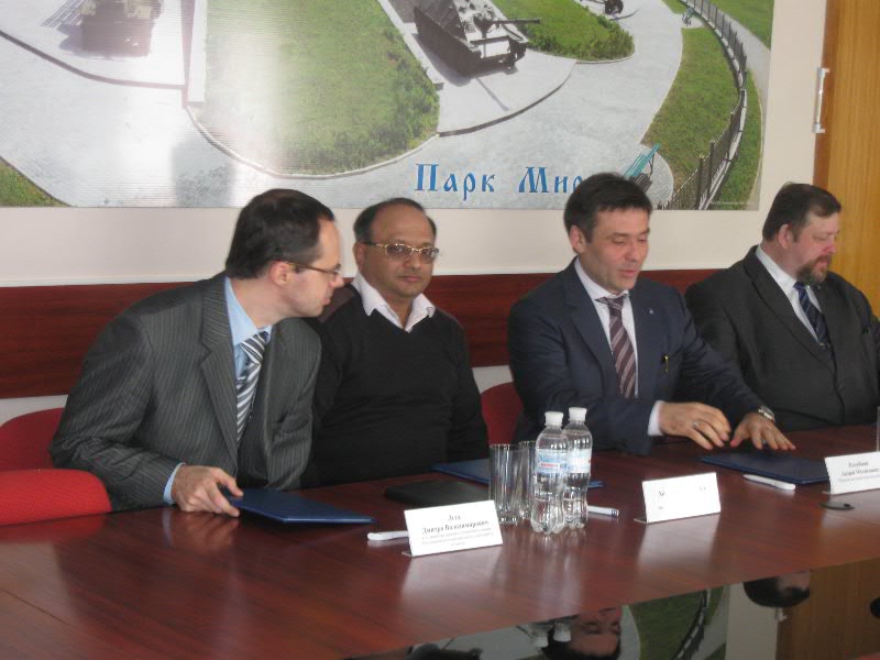 Они подписали Меморандум (слева направо): директор госучреждения «Полтавский региональный центр по инвестициям и развитию» Дмитрий Лета, Президент компании Overseas Merchandising Corporation Ltd. (Лондон) Хемант Кумар Патак, первый вице-мэр Кременчуга Андрей Погребной, Президент АСМБР Андрей Мельник.