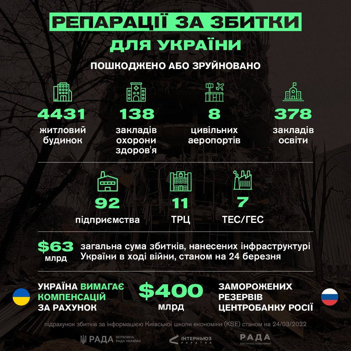 – Вони мають повністю покрити не лише ті збитки, які є з точки зору матеріальних збитків. Є додаткові збитки, і ми очікуємо мільярдні позови до Російської Федерації з боку і окремих підприємців, які будуть сформовані в один великий пул, і від нашого населення, – сказав він.