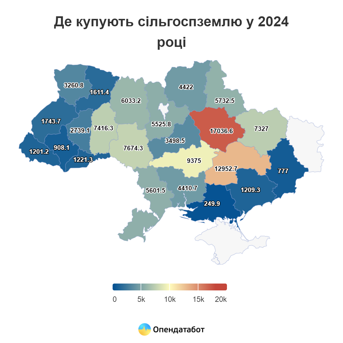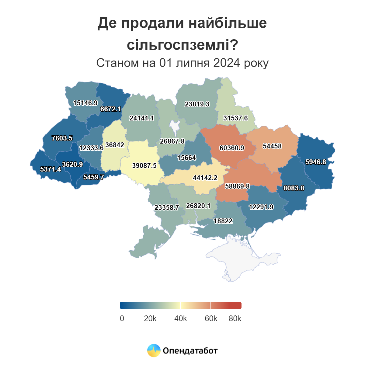 За цей час найбільше земель продали на Полтавщині — понад 60 тисяч гектар. Тоді середня ціна гектара землі в області сягала 42,75 тисячі гривень.