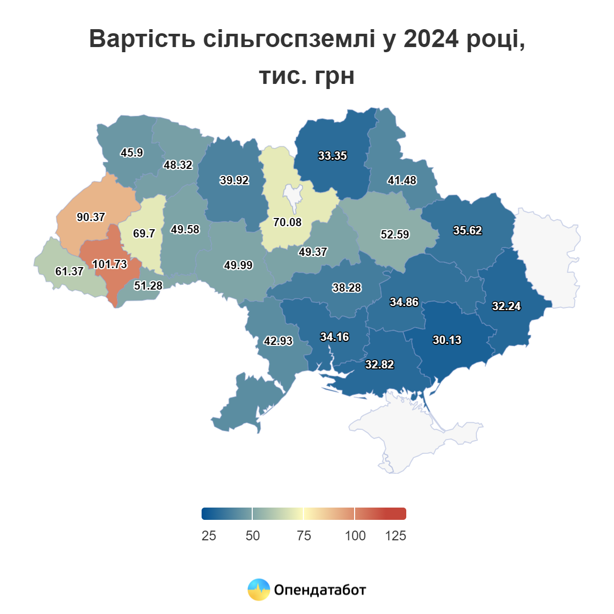 Проте з початком повномасштабної війни запит покупців та ціни на угіддя змінилися. У першому півріччі вартість 1 га сільськогосподарських земель становила приблизно 52,59 тисячі гривень. Це приблизно середній показник вартості землі по Україні.
