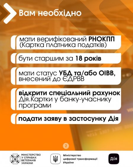 Важливо! У разі повного невикористання коштів впродовж кварталу — вони повернуться на рахунки Мінветеранів, а ветеран припиняє участь у програмі. Щоб отримати виплату у наступному кварталі, потрібно повторно подати заяву у застосунку «Дія».