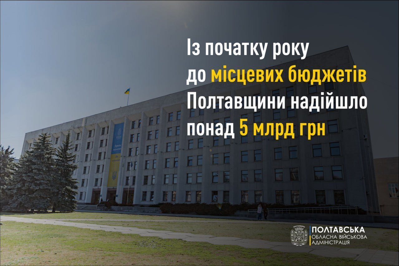 Виконання місцевих бюджетів Полтавщини за січень-березень 2025 року перевищило планові показники. За перші три місяці року до бюджетів громад надійшло загалом понад 5 млрд грн, що на 202,4 млн грн більше за планові показники. До обласного бюджету — 862,5 млн грн, що на 5,8 млн грн більше плану надходжень. Про це повідомила пресслужба Полтавської ОВА.