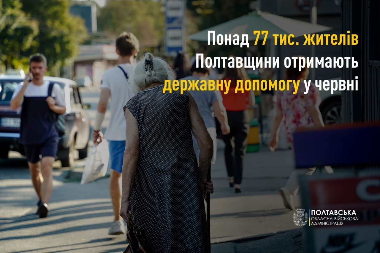 У червні державну соціальну допомогу отримають понад 77 тисяч жителів Полтавщини. На це спрямовано 190,5 млн грн.