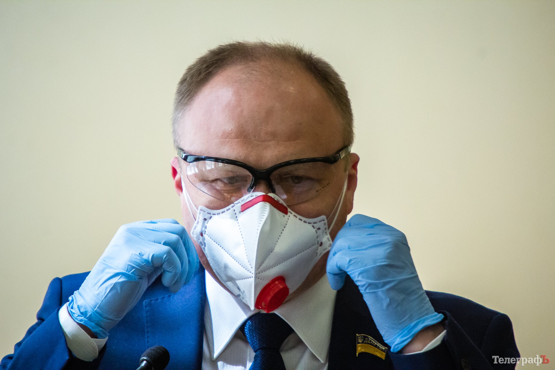 Респіратори, рукавички та окуляри видали депутатам при вході на сесію. Депутат Плескун уже встиг все одягти