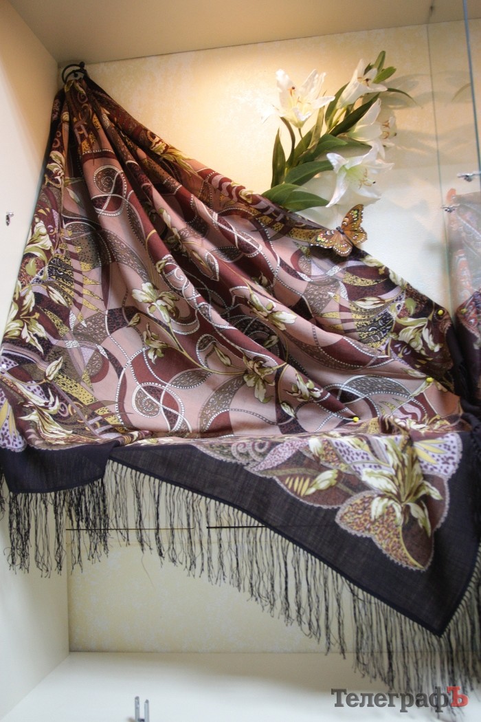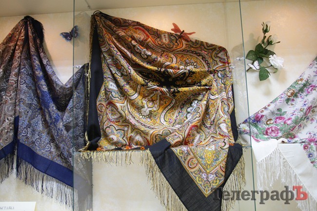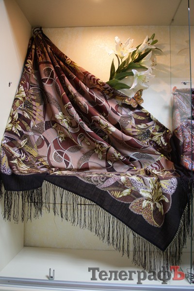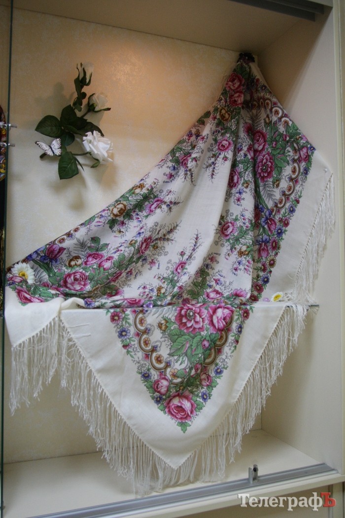 Павлопосадская платочная мануфактура имеет статус народного художественного промысла России. Эксклюзивные павлопосадские платки принадлежат кременчужанке, которая предоставила их для выставки.