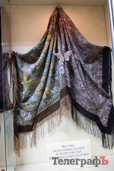 В экспозиции – платки всемирно известной Павлопосадской платочной мануфактуры