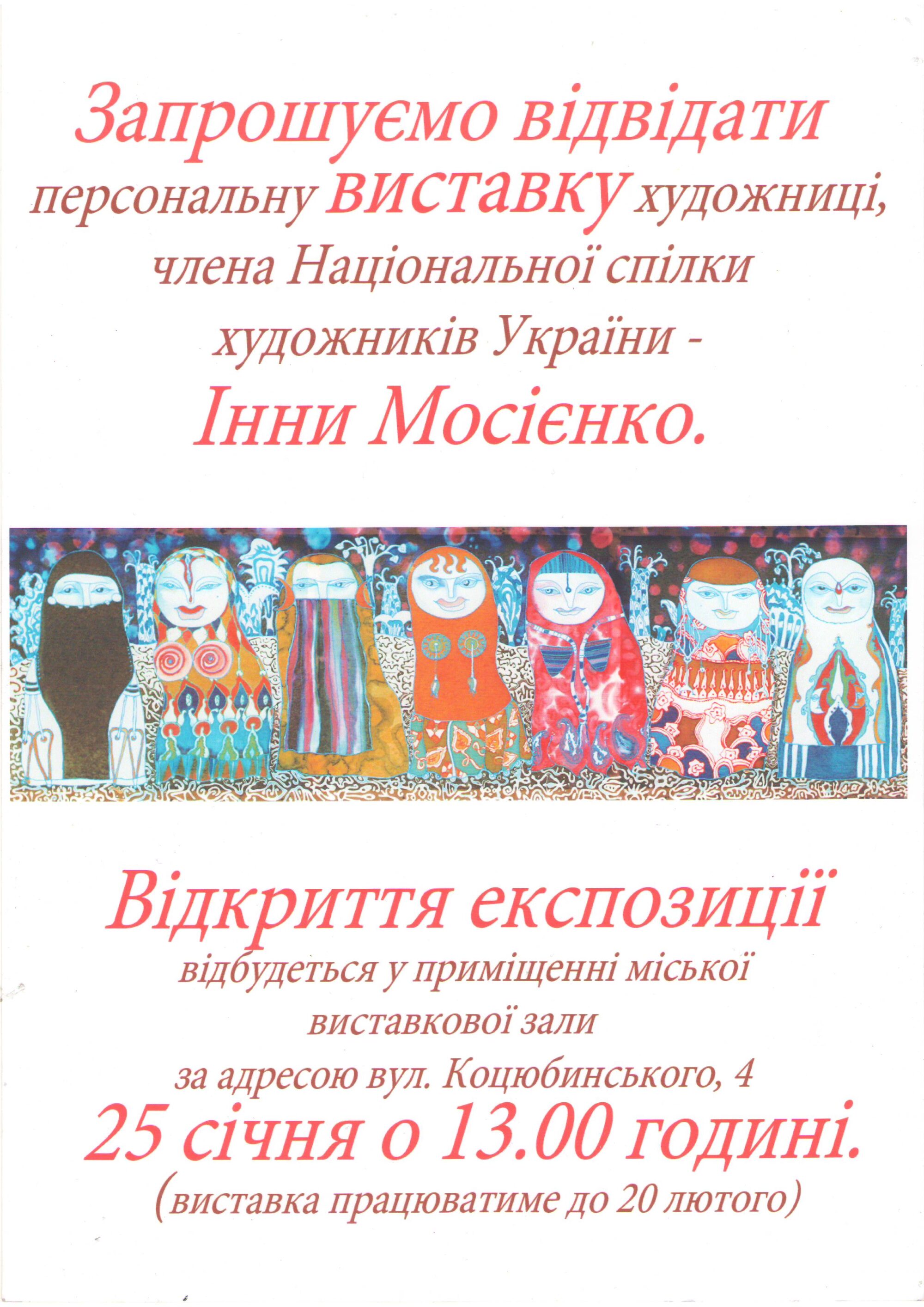 25 января в Кременчуге откроется персональная выставка кременчугской художницы Инны Мосиенко.