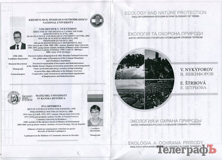 Авторы издания – первый проректор В.Никифоров (профессор, доктор биологических наук, директор регионального ландшафтного парка «Кременчугские плавни») и банско-быстрицкий доктор естественных наук и философии из словацкого университета Матея Бела – Ева Штрбова.