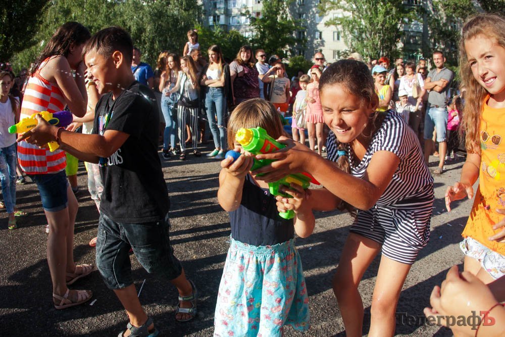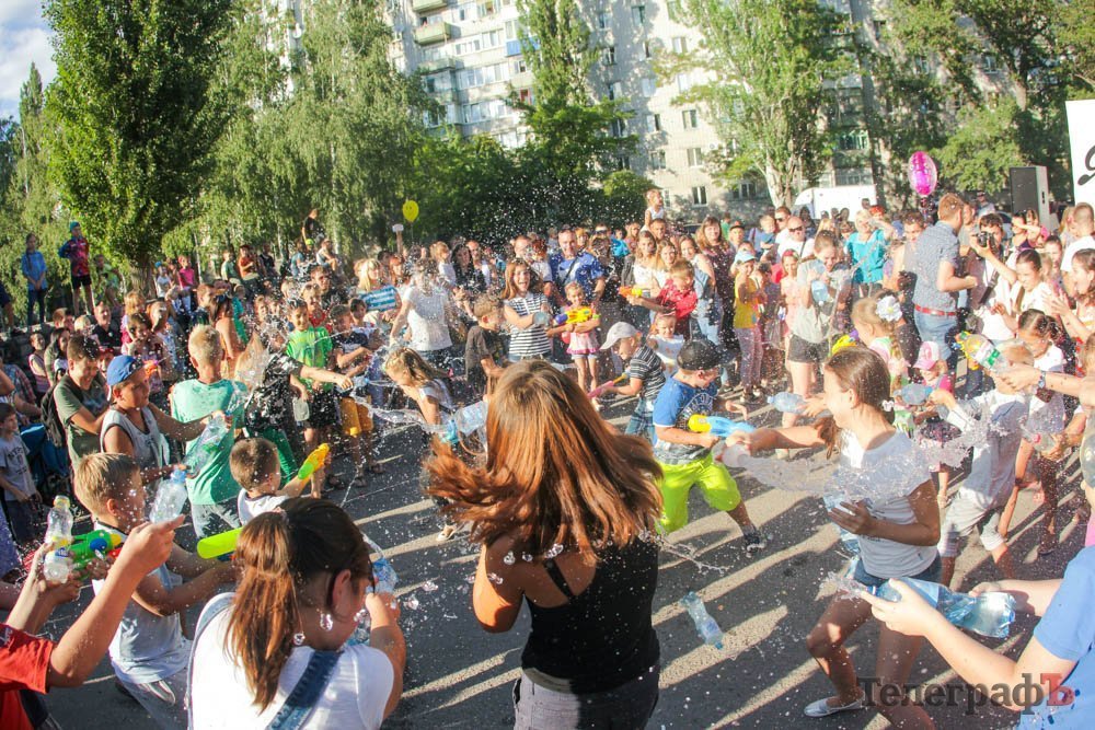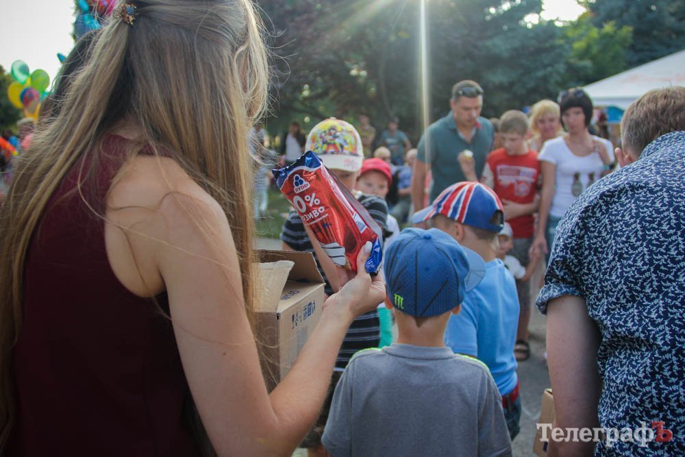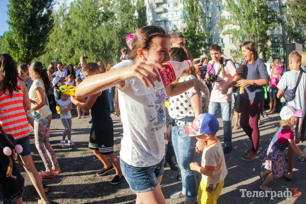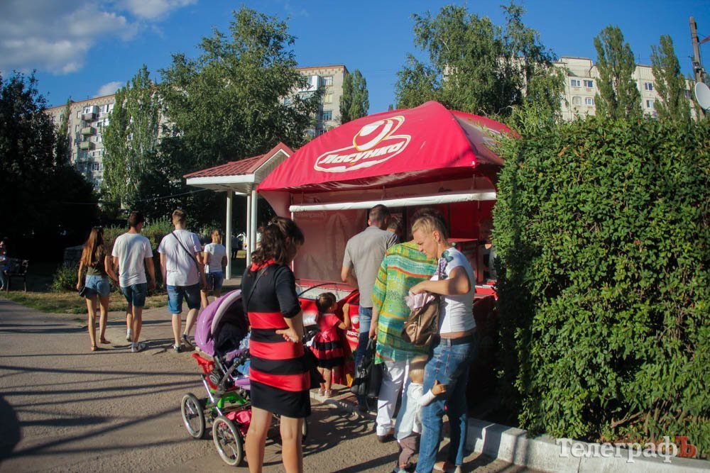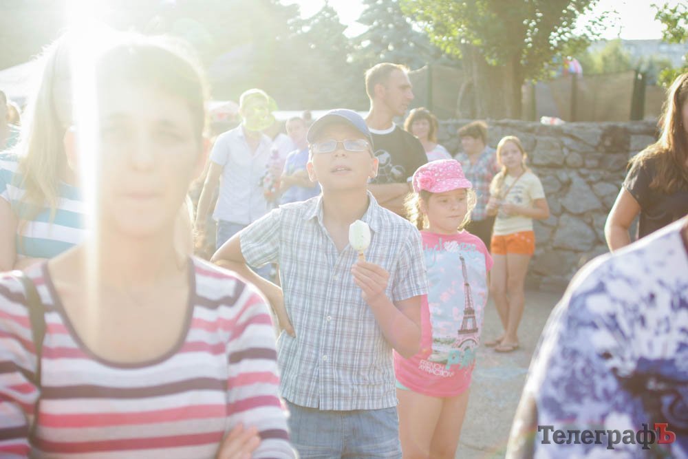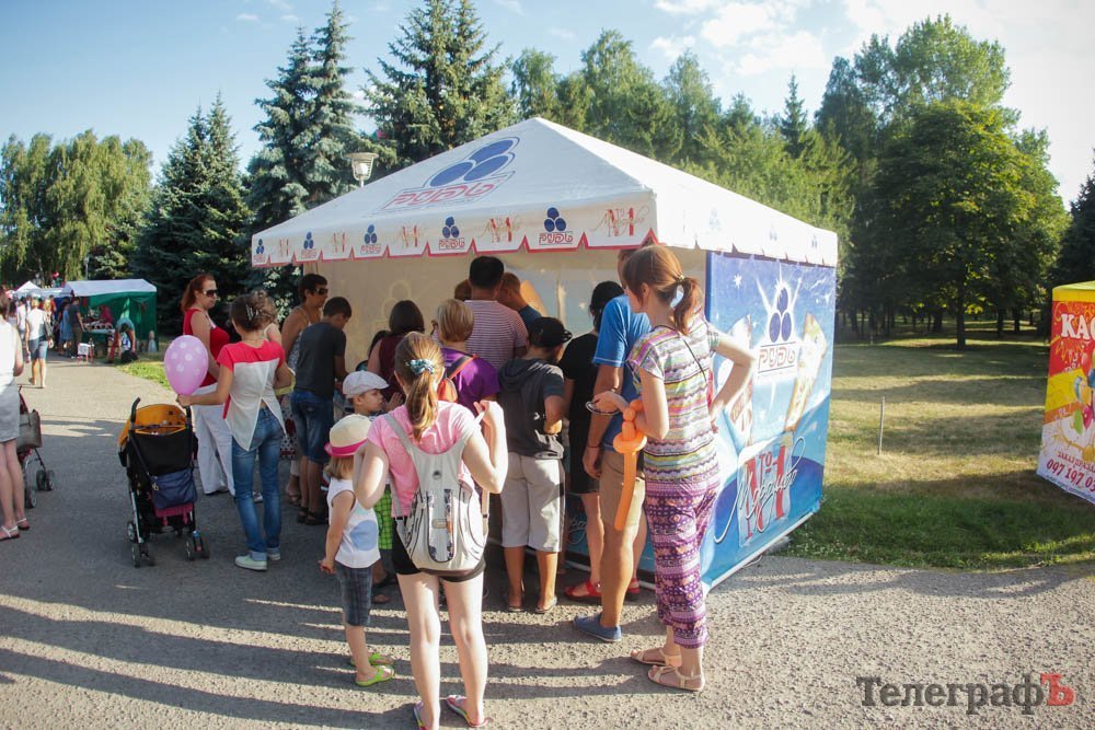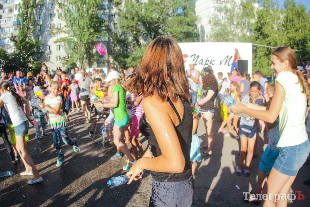 Кроме обливания водой, кременчужане охлаждались, конечно же, поедая мороженое. Дети рисовали на асфальте, катались на аттракционах, дули мыльные пузыри и участвовали в разнообразных конкурсах. Счастливы были не только малыши, но и их родители.