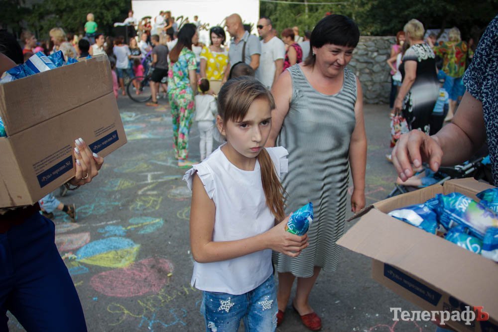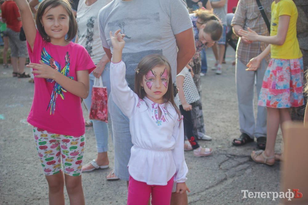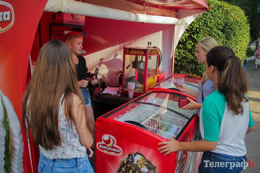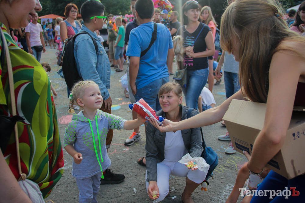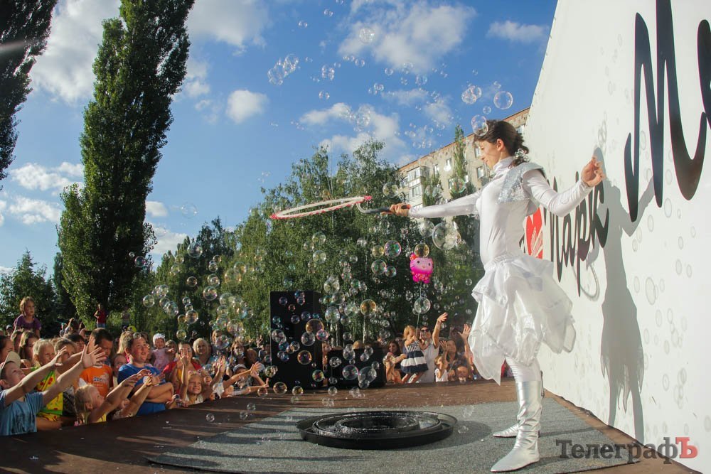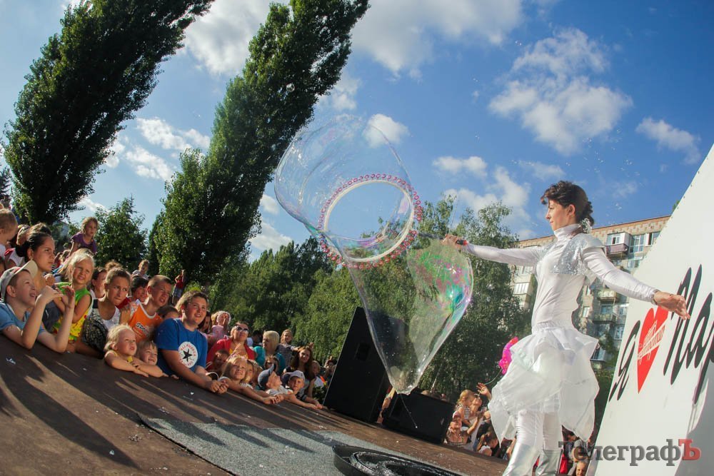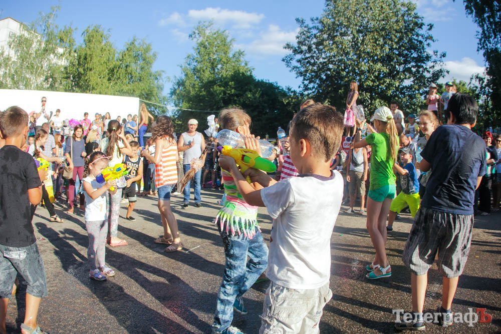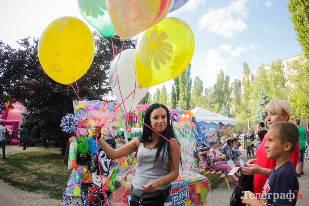 Кроме обливания водой, кременчужане охлаждались, конечно же, поедая мороженое. Дети рисовали на асфальте, катались на аттракционах, дули мыльные пузыри и участвовали в разнообразных конкурсах. Счастливы были не только малыши, но и их родители.
