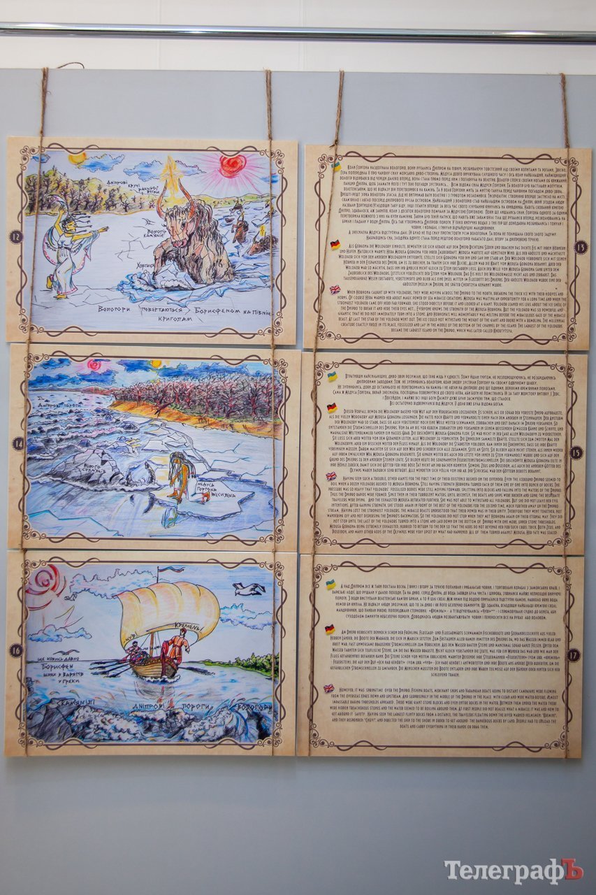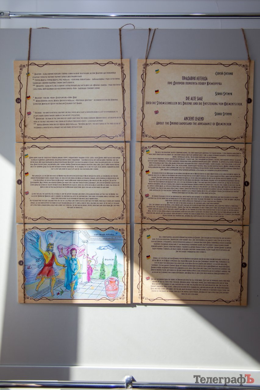 Оригінальна книга «Прадавня легенда» розміром не набагато більша за формат А4, проте її сторінки спеціально адаптували для відвідувачів виставки і розмістили на стендах, тож у кременчужан є можливість ознайомитися з твором у збільшеному вигляді.