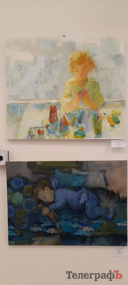 Серед них — і картини, написані під час повномасштабної війни. Деякі полотна були створені під час блекаутів. Вони виконані у темних тонах Ці твори передають внутрішній стан митця — тривогу, вразливість, пошук рівноваги. Водночас у них — світло, що пробивається крізь темряву. Це внутрішнє світло, якого трималася художниця і якого, можливо, шукає кожен із нас.