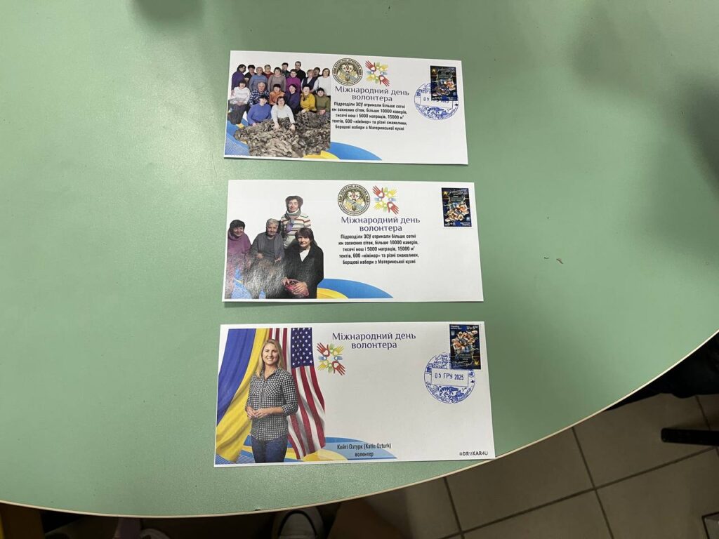 У цей день презентували конверти із зображеннями «Берегинь Крюкова», волонтерки Людмили Шевченко й американської волонтерки Кейті Озтурк.