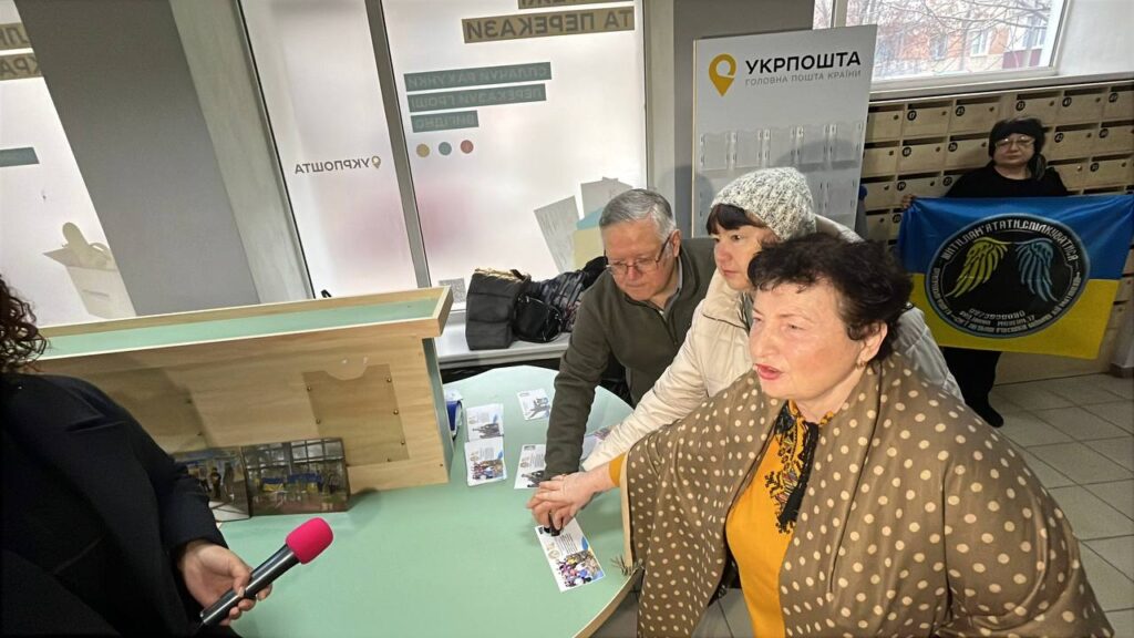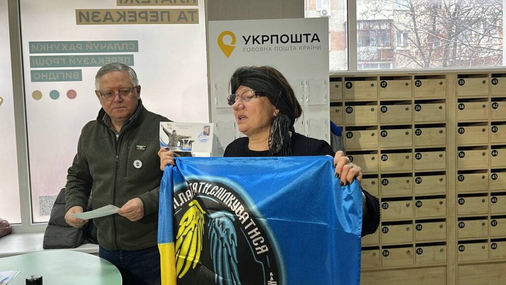Ще один конверт присвятили Людмилі Шевченко, мамі загиблого Миколи Кучеренка. Вона починала волонтерити з 14-го року, коли син пішов в АТО. На жаль, у 2023-му році він загинув, й після цього пані Людмила розширила свою сферу волонтерства.