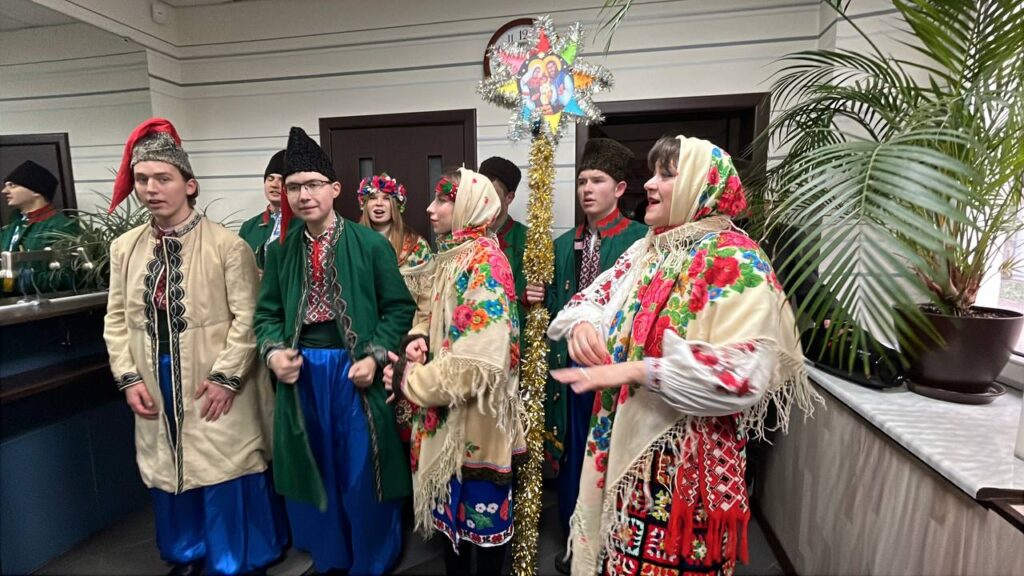 Яскраво вбрані, з незмінним атрибутом колядників — різдвяною зіркою, гості принесли з собою привітання та побажання миру й щастя Україні та кожній українській родині.