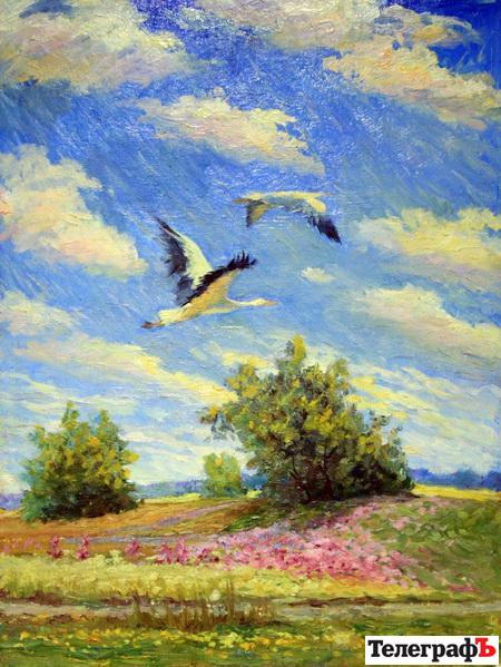 Прошкін В.Ф., «Лелеки», картон, олія