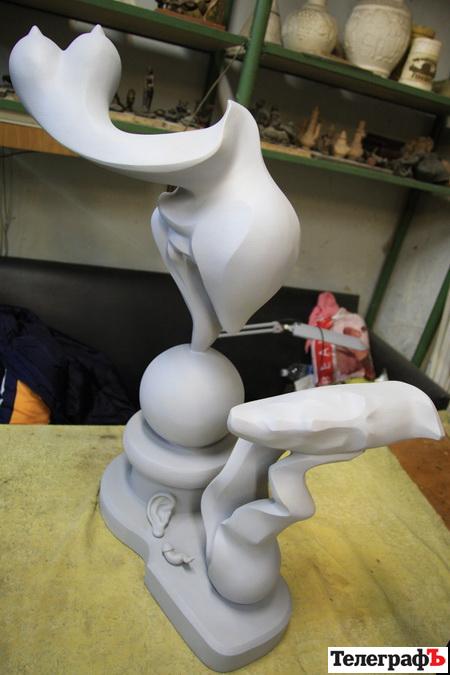 Впрочем, скульптура Олега Рябо представляет отношения больших политиков: Ющенко-президента и Тимошенко-премьера, когда они вдвоем были у власти. Некоторые детали скульптуры – на грани фола, и вызывают двоякое впечатление. Посмотрев на «отпавшие» у сюрреалистического Ющенко ухо и детородный орган, теряясь в своих чувствах по этому поводу, мы спросили о творческом замысле у автора скульптуры.