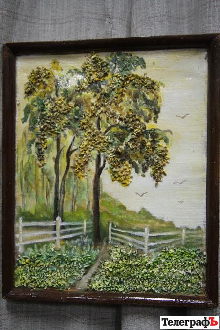 – Для мамы, творчество – это заряд бодрости после трудового дня, в буквальном смысле слове – отдушина, – рассказывает Елена Беспарточная, невестка художницы. – Знаете, я видела, как она создает полотна, когда усталая приходит домой, берет кисточку и начинает писать, что-то создавать. Вы обратили внимание, свои картины она старается сделать из того, что для большинства из нас является уже не нужным, на что многие уже не обращают внимания: сухие цветы, остатки крупы, веточки и так далее. Ей же удается все это оживить, и создать в буквальном смысле – шедевр.