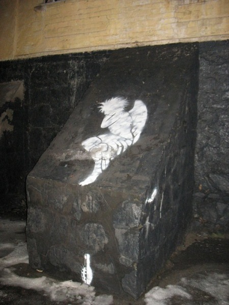 – О да! Если картины пишутся в спокойной обстановке, то в стрит-арте постоянно царит адреналин. Идешь по улице с трафаретом в одной руке и баллончиком в другой – боишься, что кто-то выскочит и придётся «делать ноги». В городских условиях, в массовых местах скопления людей – по особенному ощущаешь свою миссию. Всегда интересно, что думают люди, которые видят тебя за работой.