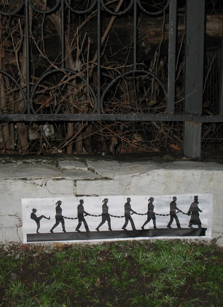 – Вначале это был капец. Когда сорвали мой плакат на тему религии, на котором были изображены люди в цепях, чувства были не особо бунтующими – на что ещё я мог рассчитывать? Но следующий плакат был совершенно безобидный, позитивный и очень в тему – булочник на неработающем хлебном киоске. Я сделал плакат метр на метр, наклеил. Было чувство трепета из-за которого я даже не успел булочника и сфотографировать – пошёл спать, а на следующее утро его уже не увидел – сорвали. Защемило внутри. Я себя успокоил – на что ещё можно было рассчитывать? Кому-то нравится, кому-то нет. Даже безобидные работы кем-то могут быть не поняты.