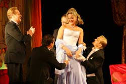 Такова интрига весёлой истории о любви, которую кременчужане смотрели на сцене городского Дворца культуры 10 октября в исполнении артистов Московского Театра оперетты. Актёры великолепно исполняли партии, искромётно шутили, в общем, старались. Зрители же заполнили весь зал, несмотря на то, что был понедельник. И благодарно аплодировали, не отпуская исполнителей со сцены – они так красиво сыграли любовь, которая побеждает суету и корысть!